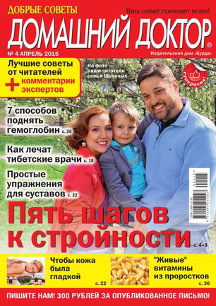 «Добрые советы. Домашний доктор» — это народный журнал о здоровье, уникальный и непохожий на другие издания медицинской тематики. А все потому, что основу журнала составляют письма читателей. В них авторы рассказывают свои истории исцеления, делятся рецептами народной медицины, проверенными на собственном опыте, просто обращаются друг к другу за помощью или дают советы тем, кто не может самостоятельно справиться со своим недугом.