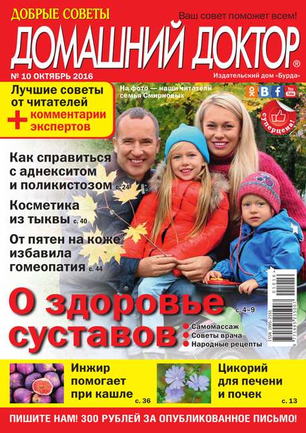 «Добрые советы. Домашний доктор» — это народный журнал о здоровье, уникальный и непохожий на другие издания медицинской тематики. А все потому, что основу журнала составляют письма читателей. В них авторы рассказывают свои истории исцеления, делятся рецептами народной медицины, проверенными на собственном опыте, просто обращаются друг к другу за помощью или дают советы тем, кто не может самостоятельно справиться со своим недугом.