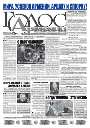 Общественно-политическое издание "Голос Армении" выходит с мая 1991 года и является наиболее популярной, авторитетной и цитируемой русскоязычной газетой страны. Спектр затрагиваемых проблем - самый широкий: от политики и экономики до культуры и социальных сетей, а авторы "Голоса Армении" по праву составляют золотой фонд современной армянской журналистики.