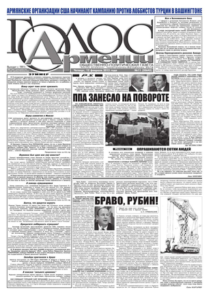 Общественно-политическое издание "Голос Армении" выходит с мая 1991 года и является наиболее популярной, авторитетной и цитируемой русскоязычной газетой страны. Спектр затрагиваемых проблем - самый широкий: от политики и экономики до культуры и социальных сетей, а авторы "Голоса Армении" по праву составляют золотой фонд современной армянской журналистики.