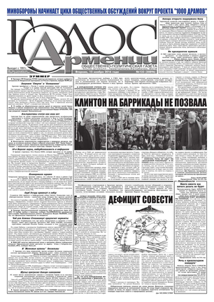 Общественно-политическое издание "Голос Армении" выходит с мая 1991 года и является наиболее популярной, авторитетной и цитируемой русскоязычной газетой страны. Спектр затрагиваемых проблем - самый широкий: от политики и экономики до культуры и социальных сетей, а авторы "Голоса Армении" по праву составляют золотой фонд современной армянской журналистики.