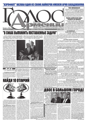 Общественно-политическое издание "Голос Армении" выходит с мая 1991 года и является наиболее популярной, авторитетной и цитируемой русскоязычной газетой страны. Спектр затрагиваемых проблем - самый широкий: от политики и экономики до культуры и социальных сетей, а авторы "Голоса Армении" по праву составляют золотой фонд современной армянской журналистики.