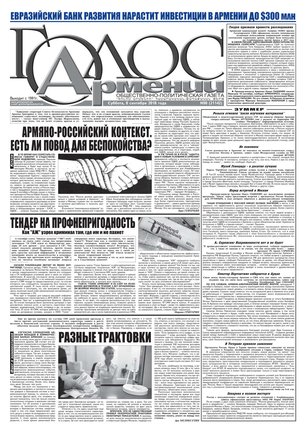 Общественно-политическое издание "Голос Армении" выходит с мая 1991 года и является наиболее популярной, авторитетной и цитируемой русскоязычной газетой страны. Спектр затрагиваемых проблем - самый широкий: от политики и экономики до культуры и социальных сетей, а авторы "Голоса Армении" по праву составляют золотой фонд современной армянской журналистики.