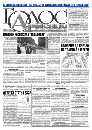 Общественно-политическое издание "Голос Армении" выходит с мая 1991 года и является наиболее популярной, авторитетной и цитируемой русскоязычной газетой страны. Спектр затрагиваемых проблем - самый широкий: от политики и экономики до культуры и социальных сетей, а авторы "Голоса Армении" по праву составляют золотой фонд современной армянской журналистики.