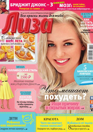 Самый популярный в России еженедельный журнал для молодых женщин «Лиза» стал еще интереснее, еще привлекательнее для читательниц. Теперь больше знаменитостей на страницах любимого журнала! Фитнес со звездой и звездный макияж, уроки стиля и самые горячие новости из жизни кумиров. А еще — модный шопинг, актуальная мода, новинки косметики и великолепные идеи для дома. Романтические истории о настоящей любви и рассказы читательниц о разных жизненных ситуациях. Аспекты психологии, секреты успешных отношений с окружающими и искусство сохранения любви.