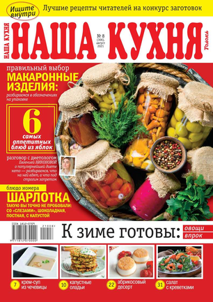 Основа каждого номера — проверенные рецепты блюд с фотографиями. С помощью «Нашей кухни» можно запросто составить меню на каждый день и для праздничного стола. С журналом «Наша кухня» процесс приготовления блюд превратится в удовольствие!