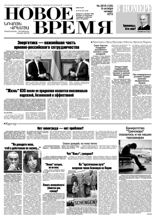 Общественно- политическая газета “Новое Время” была создана в 1992-м году и за 20 лет своего существования сумела заслужить среди армянских читателей право называться лучшей русскоязычной газетой в РА. Помимо сугубо политических тем издание обращается также к вопросам социальным, научным, культурным. Внимание уделяется и проблемам армянской диаспоры…