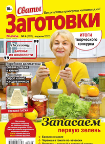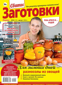 Более 100 рецептов заготовок от Сватов в каждом номере: соленья и маринады, салаты и ассорти, соусы и приправы, заготовки к сезону, сладкие заготовки, напитки, винный погребок, мясные деликатесы, здоровые рецепты, целебные заготовки, дачные хлопоты, правила хранения, а также кроссворды и сканворды для досуга. Лучшими рецептами поделятся с вами сваты Любовь Сергеевна и Михаил Михайлович.