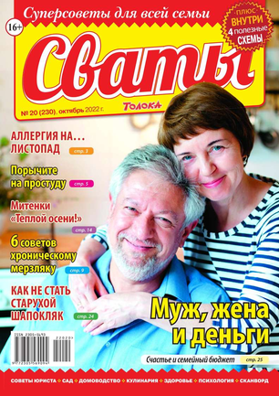 «Сват плохого не посоветует», — говорят в народе. В каждом номере журнала «Сваты» вы найдете: проверенные советы от читателей, экспертов, юристов, медиков, психологов, кулинарные рецепты, секреты здоровья, помощь в воспитании детей разного возраста, песни, байки, анекдоты. И все это в ярком, красочном оформлении.