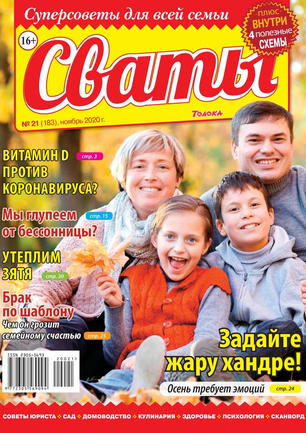 «Сват плохого не посоветует», — говорят в народе. В каждом номере журнала «Сваты» вы найдете: проверенные советы от читателей, экспертов, юристов, медиков, психологов, кулинарные рецепты, секреты здоровья, помощь в воспитании детей разного возраста, песни, байки, анекдоты. И все это в ярком, красочном оформлении.