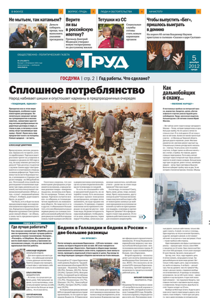 Одна из старейших общественно-политических газет (издается с февраля 1921 года). Корреспонденты «Труда» ежедневно рассказывают читателям о политике, культуре, спорте, экономике, жизни общества, самых интересных новостях дня и многом другом. Издание рассчитано на широкий круг читателей.