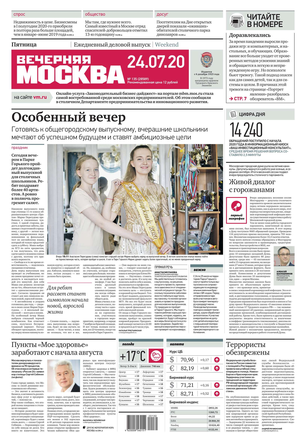 «Вечерняя Москва» — ежедневная российская вечерняя газета, старейшее из вечерних изданий в России, учрежденное в 1923 году. Выходит пять дней в неделю, кроме субботы и воскресенья. Отличается тем, что рассказывает о событиях еще не завершившегося дня. Оперативно освещает хронику и особенности жизни Москвы, охватывает все слои общества и большинство профессиональных и возрастных групп читателей.Издание представлено тремя выпусками – утренним ежедневным, вечерним (выходит три раза в неделю), еженедельным (выходит по четвергам).