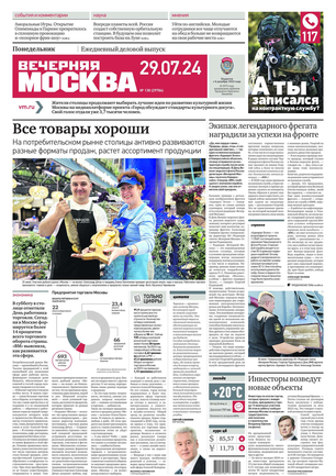Вечером на страницах «Вечерки» появляются эксклюзивные интервью ньюсмейкеров культуры и шоу-бизнеса, репортажи журналистов по вечерней Москве, афиша нашего города. Один раз в неделю выходит специальный студенческий вечерний номер.