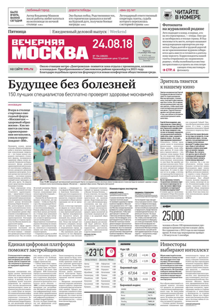 «Вечерняя Москва» — ежедневная российская вечерняя газета, старейшее из вечерних изданий в России, учрежденное в 1923 году. Выходит пять дней в неделю, кроме субботы и воскресенья. Отличается тем, что рассказывает о событиях еще не завершившегося дня. Оперативно освещает хронику и особенности жизни Москвы, охватывает все слои общества и большинство профессиональных и возрастных групп читателей.Издание представлено тремя выпусками – утренним ежедневным, вечерним (выходит три раза в неделю), еженедельным (выходит по четвергам).