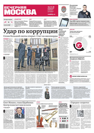 «Вечерняя Москва» — ежедневная российская вечерняя газета, старейшее из вечерних изданий в России, учрежденное в 1923 году. Выходит пять дней в неделю, кроме субботы и воскресенья. Отличается тем, что рассказывает о событиях еще не завершившегося дня. Оперативно освещает хронику и особенности жизни Москвы, охватывает все слои общества и большинство профессиональных и возрастных групп читателей.Издание представлено тремя выпусками – утренним ежедневным, вечерним (выходит три раза в неделю), еженедельным (выходит по четвергам).