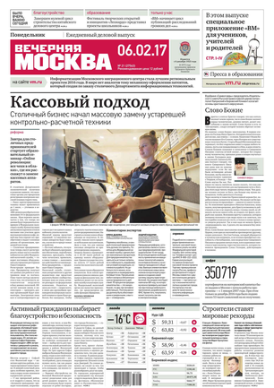 «Вечерняя Москва» — ежедневная российская вечерняя газета, старейшее из вечерних изданий в России, учрежденное в 1923 году. Выходит пять дней в неделю, кроме субботы и воскресенья. Отличается тем, что рассказывает о событиях еще не завершившегося дня. Оперативно освещает хронику и особенности жизни Москвы, охватывает все слои общества и большинство профессиональных и возрастных групп читателей.Издание представлено тремя выпусками – утренним ежедневным, вечерним (выходит три раза в неделю), еженедельным (выходит по четвергам).