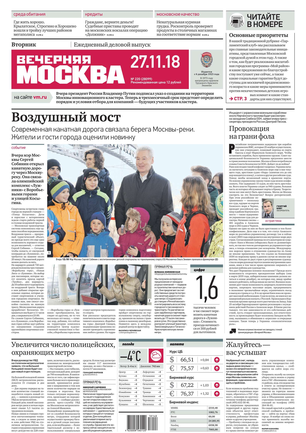 «Вечерняя Москва» — ежедневная российская вечерняя газета, старейшее из вечерних изданий в России, учрежденное в 1923 году. Выходит пять дней в неделю, кроме субботы и воскресенья. Отличается тем, что рассказывает о событиях еще не завершившегося дня. Оперативно освещает хронику и особенности жизни Москвы, охватывает все слои общества и большинство профессиональных и возрастных групп читателей.Издание представлено тремя выпусками – утренним ежедневным, вечерним (выходит три раза в неделю), еженедельным (выходит по четвергам).