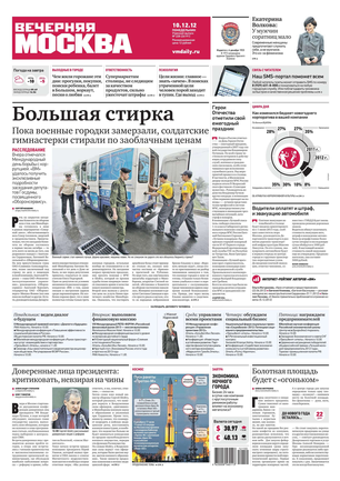 «Вечерняя Москва» — ежедневная российская вечерняя газета, старейшее из вечерних изданий в России, учрежденное в 1923 году. Выходит пять дней в неделю, кроме субботы и воскресенья. Отличается тем, что рассказывает о событиях еще не завершившегося дня. Оперативно освещает хронику и особенности жизни Москвы, охватывает все слои общества и большинство профессиональных и возрастных групп читателей.Издание представлено тремя выпусками – утренним ежедневным, вечерним (выходит три раза в неделю), еженедельным (выходит по четвергам).