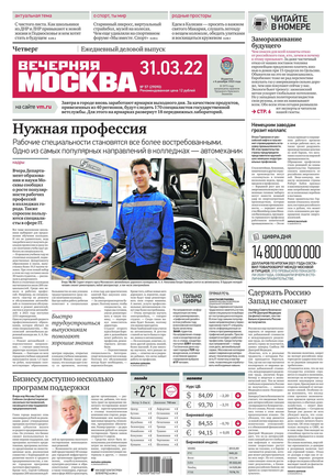 «Вечерняя Москва» — ежедневная российская вечерняя газета, старейшее из вечерних изданий в России, учрежденное в 1923 году. Выходит пять дней в неделю, кроме субботы и воскресенья. Отличается тем, что рассказывает о событиях еще не завершившегося дня. Оперативно освещает хронику и особенности жизни Москвы, охватывает все слои общества и большинство профессиональных и возрастных групп читателей.Издание представлено тремя выпусками – утренним ежедневным, вечерним (выходит три раза в неделю), еженедельным (выходит по четвергам).