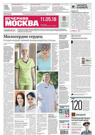 «Вечерняя Москва» — ежедневная российская вечерняя газета, старейшее из вечерних изданий в России, учрежденное в 1923 году. Выходит пять дней в неделю, кроме субботы и воскресенья. Отличается тем, что рассказывает о событиях еще не завершившегося дня. Оперативно освещает хронику и особенности жизни Москвы, охватывает все слои общества и большинство профессиональных и возрастных групп читателей.Издание представлено тремя выпусками – утренним ежедневным, вечерним (выходит три раза в неделю), еженедельным (выходит по четвергам).