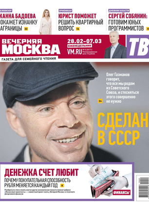 Еженедельный выпуск «Вечерней Москвы» — это значимые события недели, афиша города, новости из сферы отдыха и развлечений, телепрограмма с анонсами и комментариями, авторские колонки журналистов и авторитетные мнения экспертов, детская страничка, специальная рубрика «Золушка», интересные репортажи о необычных судьбах московских жителей, постоянные конкурсы и викторины.