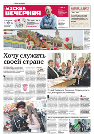 «Вечерняя Москва» — ежедневная российская вечерняя газета, старейшее из вечерних изданий в России, учрежденное в 1923 году. Выходит пять дней в неделю, кроме субботы и воскресенья. Отличается тем, что рассказывает о событиях еще не завершившегося дня. Оперативно освещает хронику и особенности жизни Москвы, охватывает все слои общества и большинство профессиональных и возрастных групп читателей.Издание представлено тремя выпусками – утренним ежедневным, вечерним (выходит три раза в неделю), еженедельным (выходит по четвергам).