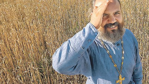 44-летний отец Дионисий (он же - Денис Петрович Соляков) тихо смеётся в бороду. Его такая реакция веселит.