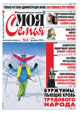 Общероссийская газета «Моя Семья» существует с 2000 года и входит в число самых популярных изданий России. Газета является не просто средством информации; для многих людей стало жизненной потребностью прочитать её раз в неделю – это сродни желанию увидеться с родственниками, поговорить с друзьями. Подавляющее большинство читателей не пропускает ни одного номера.