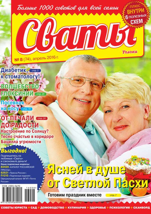 «Сват плохого не посоветует», — говорят в народе. В каждом номере журнала «Сваты» вы найдете: проверенные советы от читателей, экспертов, юристов, медиков, психологов, кулинарные рецепты, секреты здоровья, помощь в воспитании детей разного возраста, песни, байки, анекдоты. И все это в ярком, красочном оформлении.