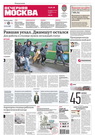 «Вечерняя Москва» — ежедневная российская вечерняя газета, старейшее из вечерних изданий в России, учрежденное в 1923 году. Выходит пять дней в неделю, кроме субботы и воскресенья. Отличается тем, что рассказывает о событиях еще не завершившегося дня. Оперативно освещает хронику и особенности жизни Москвы, охватывает все слои общества и большинство профессиональных и возрастных групп читателей.Издание представлено тремя выпусками – утренним ежедневным, вечерним (выходит три раза в неделю), еженедельным (выходит по четвергам).