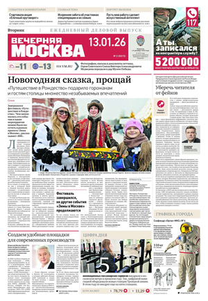 «Вечерняя Москва» — ежедневная российская вечерняя газета, старейшее из вечерних изданий в России, учрежденное в 1923 году. Выходит пять дней в неделю, кроме субботы и воскресенья. Отличается тем, что рассказывает о событиях еще не завершившегося дня. Оперативно освещает хронику и особенности жизни Москвы, охватывает все слои общества и большинство профессиональных и возрастных групп читателей.Издание представлено тремя выпусками – утренним ежедневным, вечерним (выходит три раза в неделю), еженедельным (выходит по четвергам).