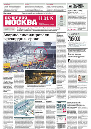 «Вечерняя Москва» — ежедневная российская вечерняя газета, старейшее из вечерних изданий в России, учрежденное в 1923 году. Выходит пять дней в неделю, кроме субботы и воскресенья. Отличается тем, что рассказывает о событиях еще не завершившегося дня. Оперативно освещает хронику и особенности жизни Москвы, охватывает все слои общества и большинство профессиональных и возрастных групп читателей.Издание представлено тремя выпусками – утренним ежедневным, вечерним (выходит три раза в неделю), еженедельным (выходит по четвергам).