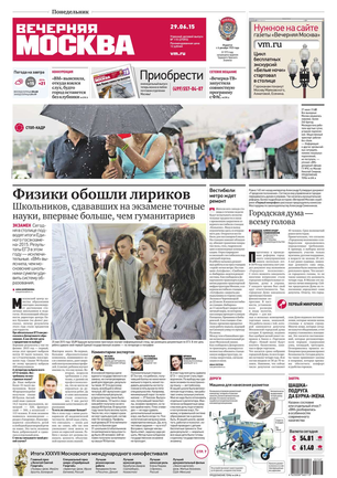 «Вечерняя Москва» — ежедневная российская вечерняя газета, старейшее из вечерних изданий в России, учрежденное в 1923 году. Выходит пять дней в неделю, кроме субботы и воскресенья. Отличается тем, что рассказывает о событиях еще не завершившегося дня. Оперативно освещает хронику и особенности жизни Москвы, охватывает все слои общества и большинство профессиональных и возрастных групп читателей.Издание представлено тремя выпусками – утренним ежедневным, вечерним (выходит три раза в неделю), еженедельным (выходит по четвергам).