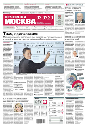 «Вечерняя Москва» — ежедневная российская вечерняя газета, старейшее из вечерних изданий в России, учрежденное в 1923 году. Выходит пять дней в неделю, кроме субботы и воскресенья. Отличается тем, что рассказывает о событиях еще не завершившегося дня. Оперативно освещает хронику и особенности жизни Москвы, охватывает все слои общества и большинство профессиональных и возрастных групп читателей.Издание представлено тремя выпусками – утренним ежедневным, вечерним (выходит три раза в неделю), еженедельным (выходит по четвергам).