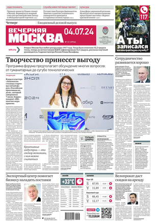 «Вечерняя Москва» — ежедневная российская вечерняя газета, старейшее из вечерних изданий в России, учрежденное в 1923 году. Выходит пять дней в неделю, кроме субботы и воскресенья. Отличается тем, что рассказывает о событиях еще не завершившегося дня. Оперативно освещает хронику и особенности жизни Москвы, охватывает все слои общества и большинство профессиональных и возрастных групп читателей.Издание представлено тремя выпусками – утренним ежедневным, вечерним (выходит три раза в неделю), еженедельным (выходит по четвергам).