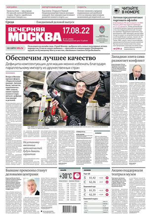 «Вечерняя Москва» — ежедневная российская вечерняя газета, старейшее из вечерних изданий в России, учрежденное в 1923 году. Выходит пять дней в неделю, кроме субботы и воскресенья. Отличается тем, что рассказывает о событиях еще не завершившегося дня. Оперативно освещает хронику и особенности жизни Москвы, охватывает все слои общества и большинство профессиональных и возрастных групп читателей.Издание представлено тремя выпусками – утренним ежедневным, вечерним (выходит три раза в неделю), еженедельным (выходит по четвергам).