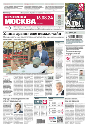 «Вечерняя Москва» — ежедневная российская вечерняя газета, старейшее из вечерних изданий в России, учрежденное в 1923 году. Выходит пять дней в неделю, кроме субботы и воскресенья. Отличается тем, что рассказывает о событиях еще не завершившегося дня. Оперативно освещает хронику и особенности жизни Москвы, охватывает все слои общества и большинство профессиональных и возрастных групп читателей.Издание представлено тремя выпусками – утренним ежедневным, вечерним (выходит три раза в неделю), еженедельным (выходит по четвергам).
