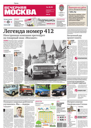 «Вечерняя Москва» — ежедневная российская вечерняя газета, старейшее из вечерних изданий в России, учрежденное в 1923 году. Выходит пять дней в неделю, кроме субботы и воскресенья. Отличается тем, что рассказывает о событиях еще не завершившегося дня. Оперативно освещает хронику и особенности жизни Москвы, охватывает все слои общества и большинство профессиональных и возрастных групп читателей.Издание представлено тремя выпусками – утренним ежедневным, вечерним (выходит три раза в неделю), еженедельным (выходит по четвергам).