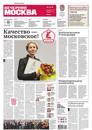 «Вечерняя Москва» — ежедневная российская вечерняя газета, старейшее из вечерних изданий в России, учрежденное в 1923 году. Выходит пять дней в неделю, кроме субботы и воскресенья. Отличается тем, что рассказывает о событиях еще не завершившегося дня. Оперативно освещает хронику и особенности жизни Москвы, охватывает все слои общества и большинство профессиональных и возрастных групп читателей.Издание представлено тремя выпусками – утренним ежедневным, вечерним (выходит три раза в неделю), еженедельным (выходит по четвергам).