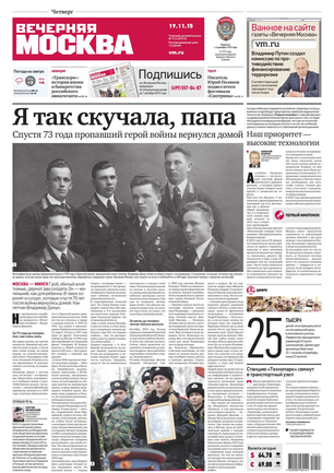 «Вечерняя Москва» — ежедневная российская вечерняя газета, старейшее из вечерних изданий в России, учрежденное в 1923 году. Выходит пять дней в неделю, кроме субботы и воскресенья. Отличается тем, что рассказывает о событиях еще не завершившегося дня. Оперативно освещает хронику и особенности жизни Москвы, охватывает все слои общества и большинство профессиональных и возрастных групп читателей.Издание представлено тремя выпусками – утренним ежедневным, вечерним (выходит три раза в неделю), еженедельным (выходит по четвергам).