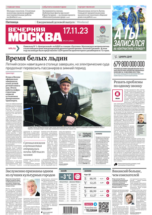 «Вечерняя Москва» — ежедневная российская вечерняя газета, старейшее из вечерних изданий в России, учрежденное в 1923 году. Выходит пять дней в неделю, кроме субботы и воскресенья. Отличается тем, что рассказывает о событиях еще не завершившегося дня. Оперативно освещает хронику и особенности жизни Москвы, охватывает все слои общества и большинство профессиональных и возрастных групп читателей.Издание представлено тремя выпусками – утренним ежедневным, вечерним (выходит три раза в неделю), еженедельным (выходит по четвергам).