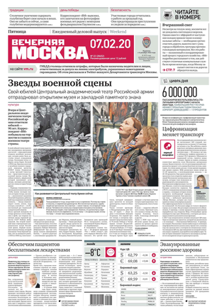 «Вечерняя Москва» — ежедневная российская вечерняя газета, старейшее из вечерних изданий в России, учрежденное в 1923 году. Выходит пять дней в неделю, кроме субботы и воскресенья. Отличается тем, что рассказывает о событиях еще не завершившегося дня. Оперативно освещает хронику и особенности жизни Москвы, охватывает все слои общества и большинство профессиональных и возрастных групп читателей.Издание представлено тремя выпусками – утренним ежедневным, вечерним (выходит три раза в неделю), еженедельным (выходит по четвергам).