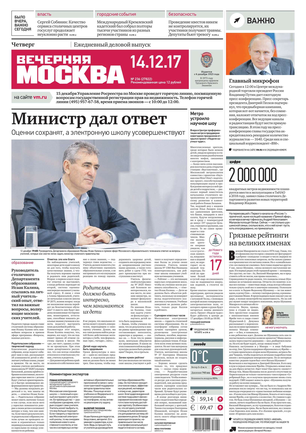 «Вечерняя Москва» — ежедневная российская вечерняя газета, старейшее из вечерних изданий в России, учрежденное в 1923 году. Выходит пять дней в неделю, кроме субботы и воскресенья. Отличается тем, что рассказывает о событиях еще не завершившегося дня. Оперативно освещает хронику и особенности жизни Москвы, охватывает все слои общества и большинство профессиональных и возрастных групп читателей.Издание представлено тремя выпусками – утренним ежедневным, вечерним (выходит три раза в неделю), еженедельным (выходит по четвергам).