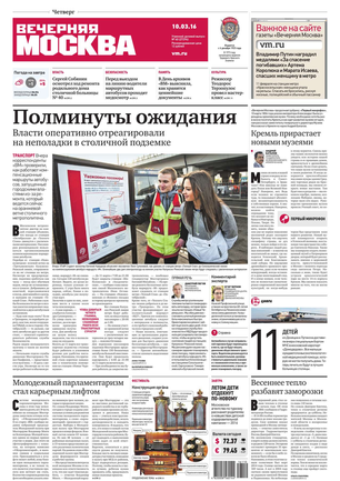 «Вечерняя Москва» — ежедневная российская вечерняя газета, старейшее из вечерних изданий в России, учрежденное в 1923 году. Выходит пять дней в неделю, кроме субботы и воскресенья. Отличается тем, что рассказывает о событиях еще не завершившегося дня. Оперативно освещает хронику и особенности жизни Москвы, охватывает все слои общества и большинство профессиональных и возрастных групп читателей.Издание представлено тремя выпусками – утренним ежедневным, вечерним (выходит три раза в неделю), еженедельным (выходит по четвергам).