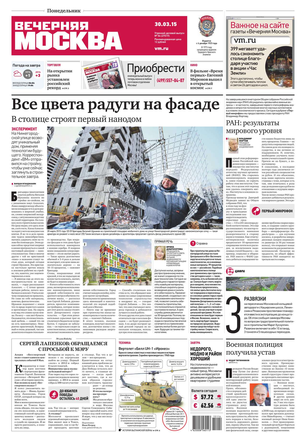 «Вечерняя Москва» — ежедневная российская вечерняя газета, старейшее из вечерних изданий в России, учрежденное в 1923 году. Выходит пять дней в неделю, кроме субботы и воскресенья. Отличается тем, что рассказывает о событиях еще не завершившегося дня. Оперативно освещает хронику и особенности жизни Москвы, охватывает все слои общества и большинство профессиональных и возрастных групп читателей.Издание представлено тремя выпусками – утренним ежедневным, вечерним (выходит три раза в неделю), еженедельным (выходит по четвергам).