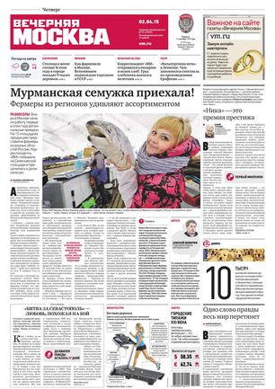 Еженедельный выпуск «Вечерней Москвы» — это значимые события недели, афиша города, новости из сферы отдыха и развлечений, телепрограмма с анонсами и комментариями, авторские колонки журналистов и авторитетные мнения экспертов, детская страничка, специальная рубрика «Золушка», интересные репортажи о необычных судьбах московских жителей, постоянные конкурсы и викторины.