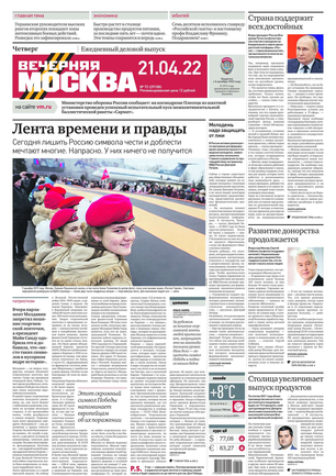 «Вечерняя Москва» — ежедневная российская вечерняя газета, старейшее из вечерних изданий в России, учрежденное в 1923 году. Выходит пять дней в неделю, кроме субботы и воскресенья. Отличается тем, что рассказывает о событиях еще не завершившегося дня. Оперативно освещает хронику и особенности жизни Москвы, охватывает все слои общества и большинство профессиональных и возрастных групп читателей.Издание представлено тремя выпусками – утренним ежедневным, вечерним (выходит три раза в неделю), еженедельным (выходит по четвергам).