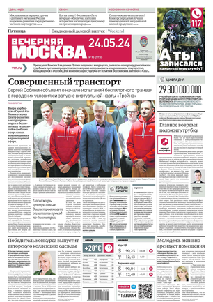 «Вечерняя Москва» — ежедневная российская вечерняя газета, старейшее из вечерних изданий в России, учрежденное в 1923 году. Выходит пять дней в неделю, кроме субботы и воскресенья. Отличается тем, что рассказывает о событиях еще не завершившегося дня. Оперативно освещает хронику и особенности жизни Москвы, охватывает все слои общества и большинство профессиональных и возрастных групп читателей.Издание представлено тремя выпусками – утренним ежедневным, вечерним (выходит три раза в неделю), еженедельным (выходит по четвергам).