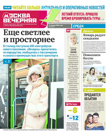«Вечерняя Москва» — ежедневная российская вечерняя газета, старейшее из вечерних изданий в России, учрежденное в 1923 году. Выходит пять дней в неделю, кроме субботы и воскресенья. Отличается тем, что рассказывает о событиях еще не завершившегося дня. Оперативно освещает хронику и особенности жизни Москвы, охватывает все слои общества и большинство профессиональных и возрастных групп читателей.Издание представлено тремя выпусками – утренним ежедневным, вечерним (выходит три раза в неделю), еженедельным (выходит по четвергам).