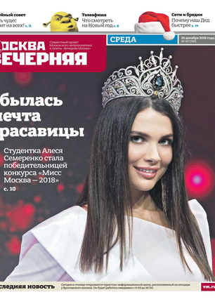 «Вечерняя Москва» — ежедневная российская вечерняя газета, старейшее из вечерних изданий в России, учрежденное в 1923 году. Выходит пять дней в неделю, кроме субботы и воскресенья. Отличается тем, что рассказывает о событиях еще не завершившегося дня. Оперативно освещает хронику и особенности жизни Москвы, охватывает все слои общества и большинство профессиональных и возрастных групп читателей.Издание представлено тремя выпусками – утренним ежедневным, вечерним (выходит три раза в неделю), еженедельным (выходит по четвергам).
